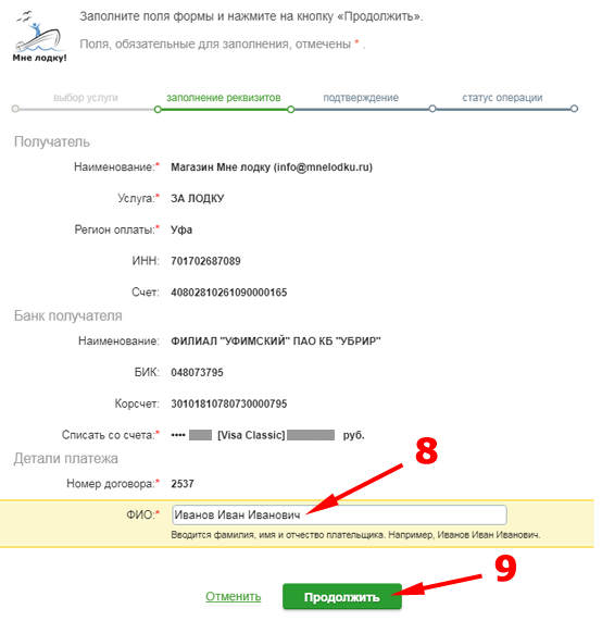 8. Вводите ФИО плательщика.