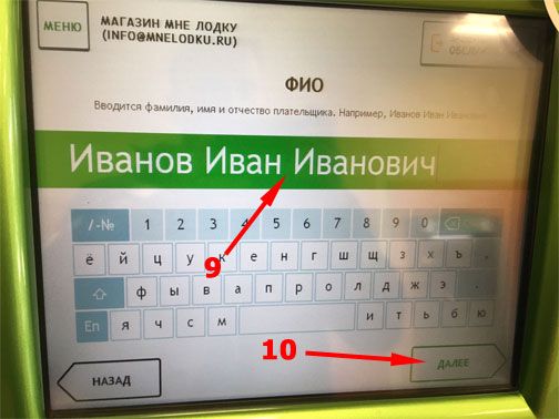 9. Вводите ФИО плательщика.