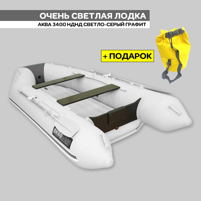 Только сегодня 29.12.2021 при покупке лодки Аква 3400 НДНД светло-серый/графит в подарок идет герметичный мешок на 5 л для вещей.