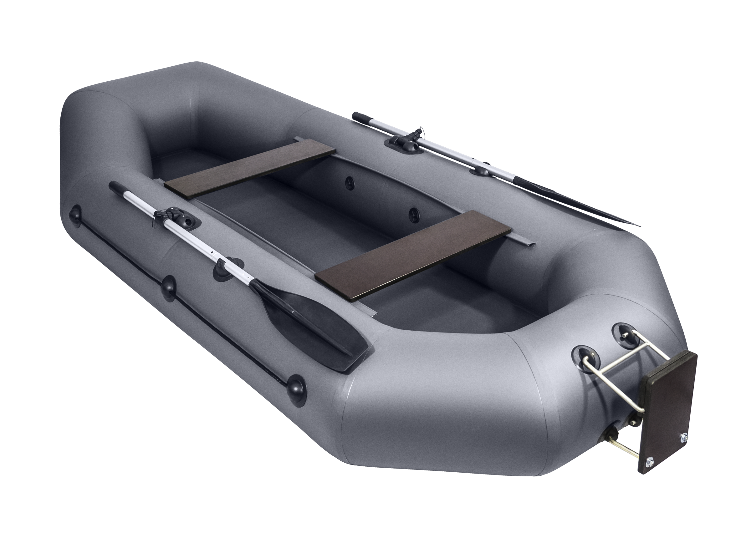 Вместительная гребная лодка длиной 3 метра, 3-х местная, в комплекте идет навесной транец, что позволяет ставить на лодку небольшой мотор до 2.5 лс и двигаться не на веслах со скоростью до 10 км/ч. Достаточно просторная по ширине внутри и имеет сравнительно большой баллон 40 см. В качестве дополнительного аксессуара можно приобрести жесткий пол-книжку по форме днища, чтобы в лодке можно было стоять.