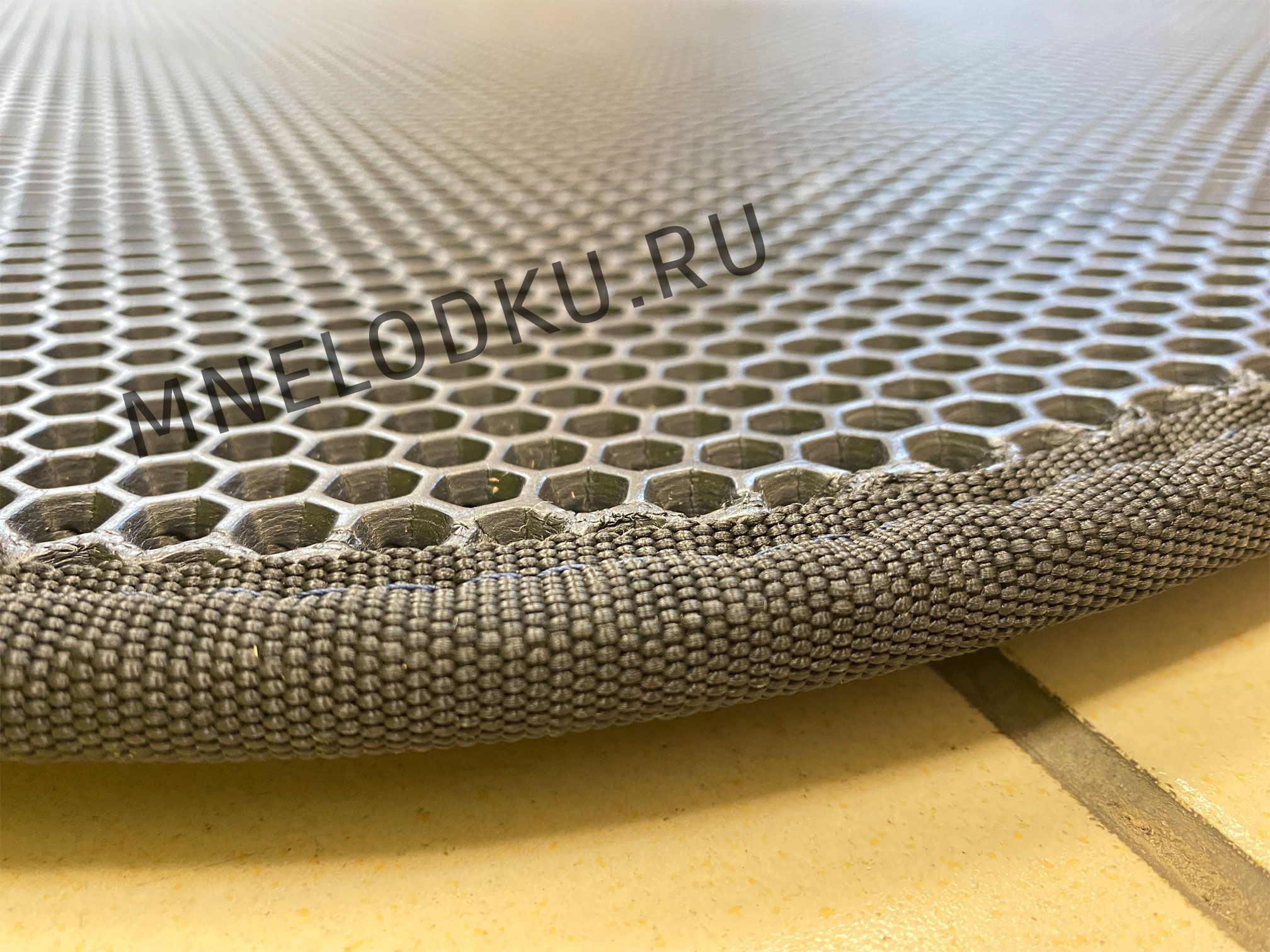 Коврик очень прочный и эластичный. Имеет достаточную толщину, чтобы не собираться и не морщиться при перемещении в лодке.