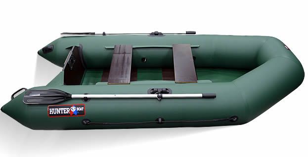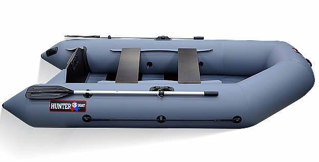 Идеально подойдет для охоты и рыбалки. Предназначена для установки подвесного лодочного мотора мощностью до 5 лс. Главные плюсы этой модели - малый вес, быстрота сборки, компактность и удобство переноса. Фирменная эмблема на борту "HUNTERBOAT".