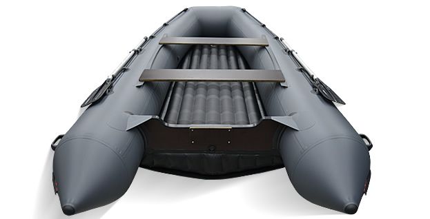 Надувное дно представляет собой независимый герметичный отсек, вклеенный между баллонами. Одним из очевидных плюсов такой конструкции является малый вес, компактность и жесткость в собранном виде. При сборке, как таковой монтаж пола отсутствует, достаточно просто накачать отсеки лодки и установить сиденья и весла.