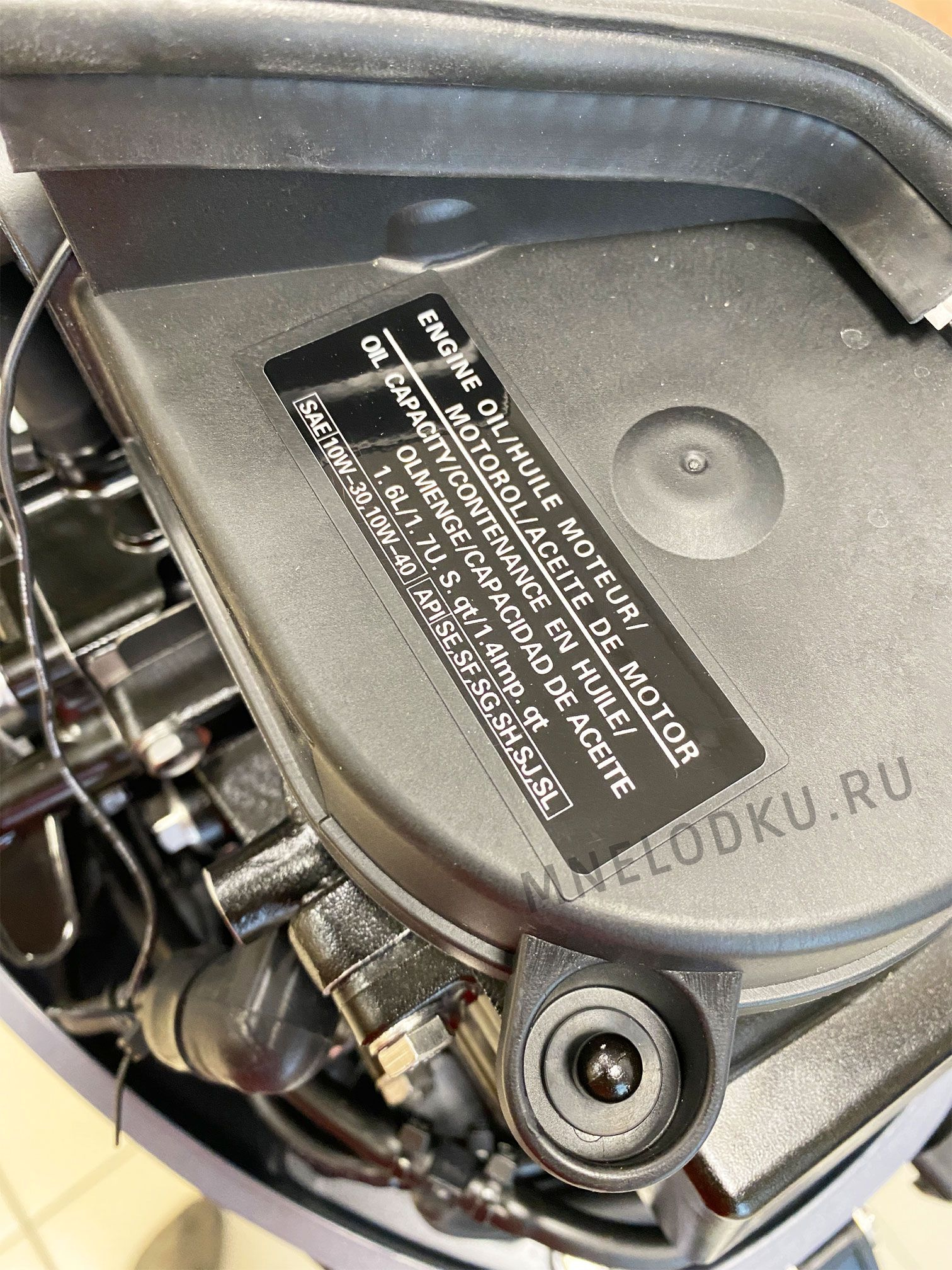 Мотор необходимо обкатать в течение 10 часов. Перед запуском мотора обязательно залейте масло в двигатель. Объем масла 1.6 л, тип SAE 10W-30, 10W-40. В инструкции и на наклейках это указано. Бензин 92 или 95. В редуктор заливайте масло полусинтетика SAE 75W-90 трансмиссионное.