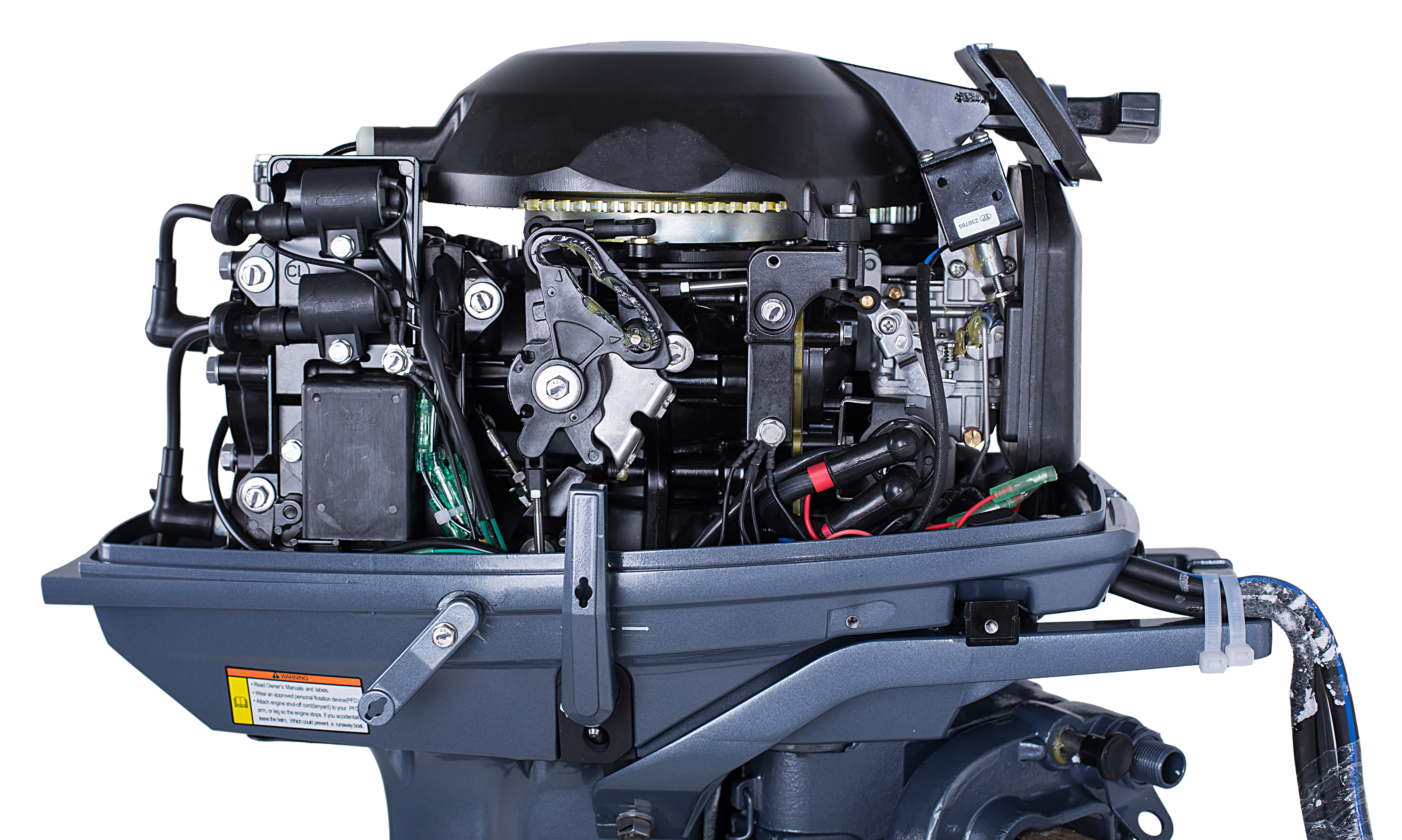 Достаточно мощный лодочный мотор с дистанцией. Требует регистрации в ГИМС.