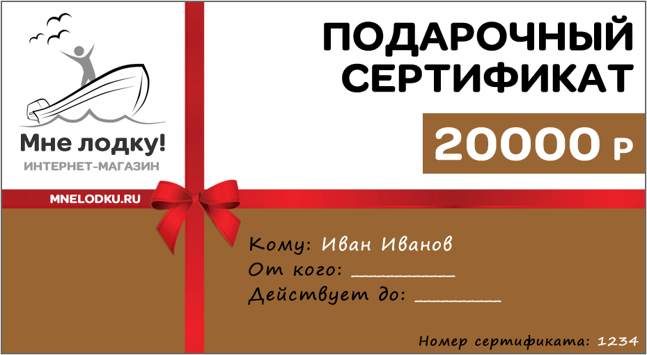 К примеру, Ваш парень, муж, отец, дед, начальник, коллега, друг - рыбак или охотник, а может быть просто любитель отдыха на воде. Вы очень хотите сделать ему приятный и нужный подарок, но сомневаетесь, что именно подарить: какую модификацию лодки выбрать или какой лодочный мотор заказать. В этом случае Вам поможет подарочный сертификат нашего магазина, подарите его, а конкретный заказ уже сделает он. Все просто! Пользуйтесь!