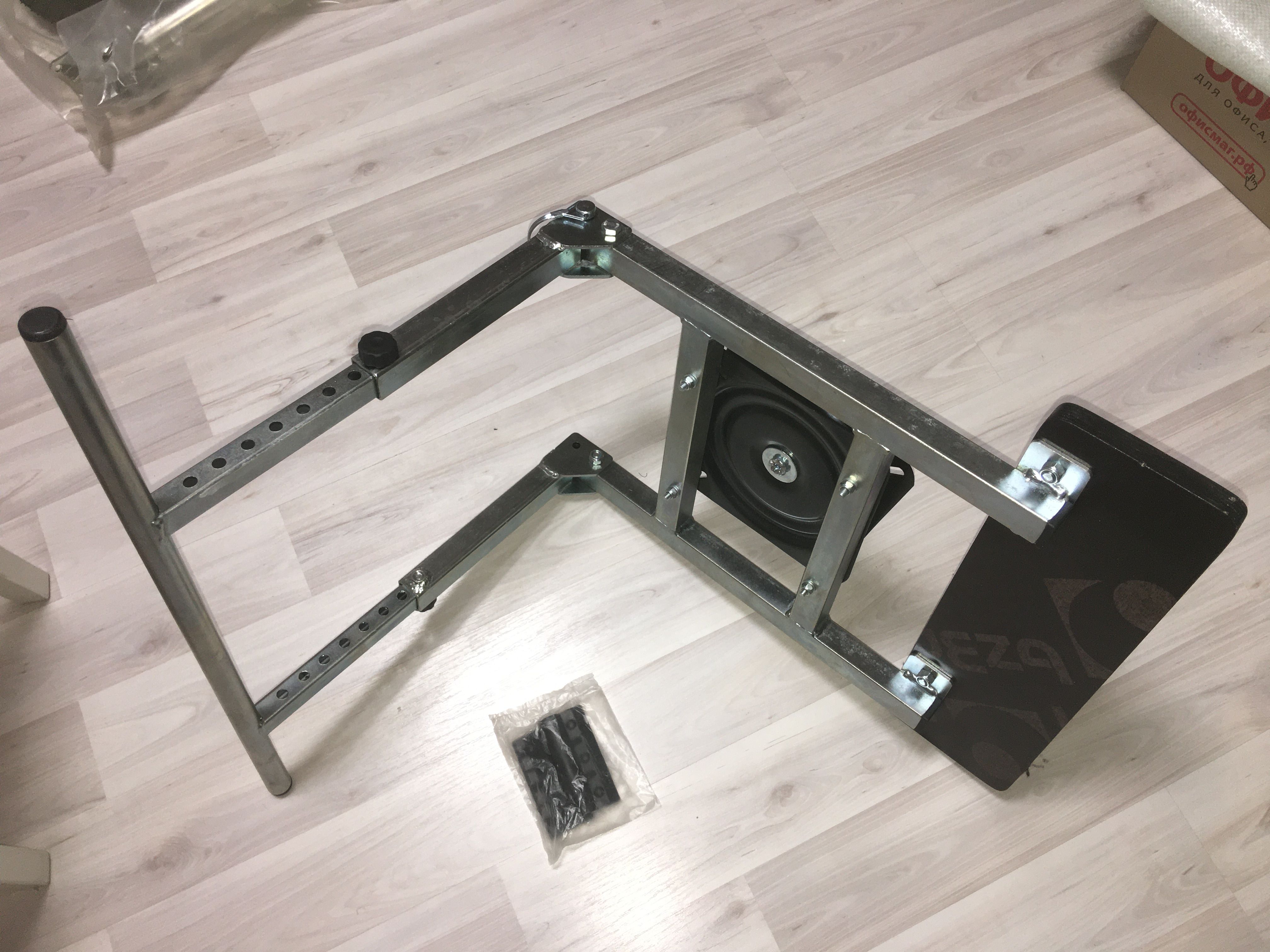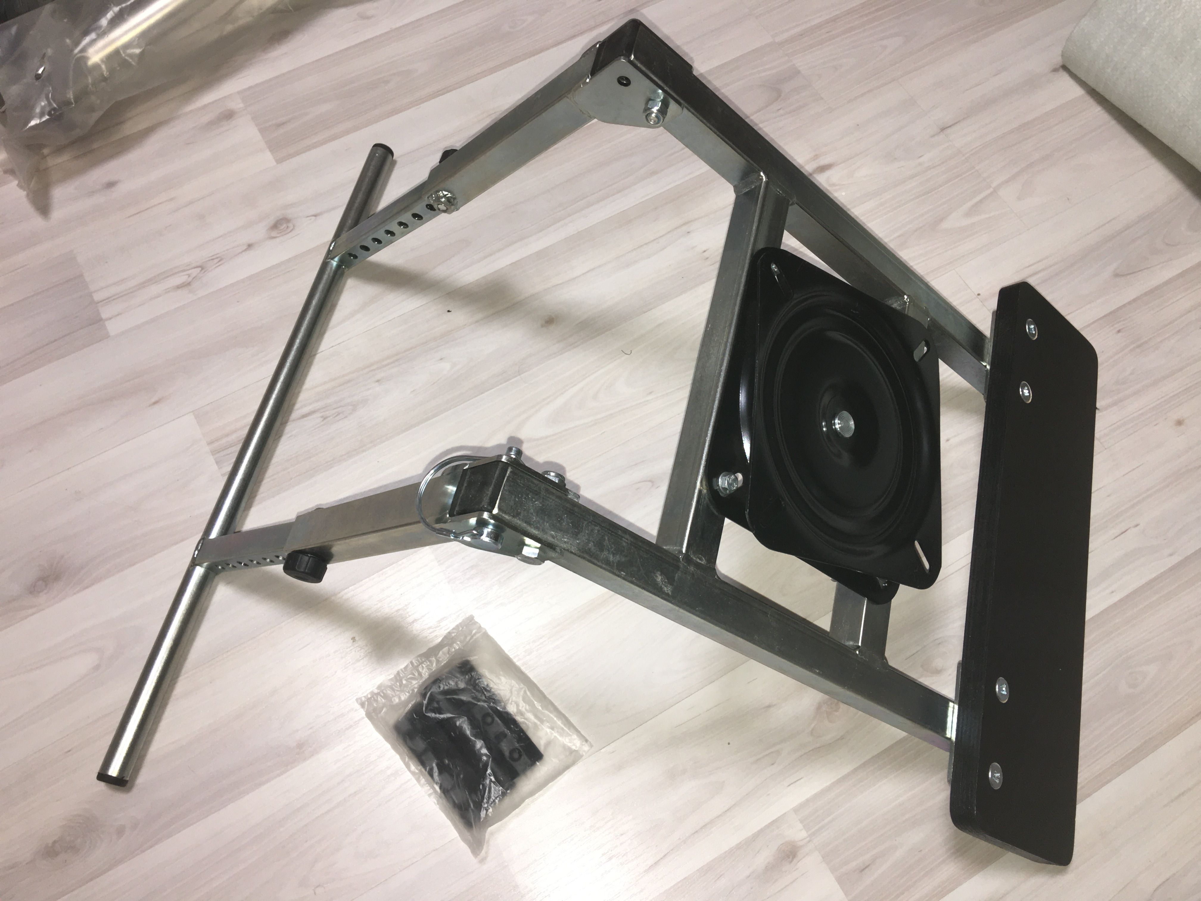 Стойка предназначена для установки кресла в лодку ПВХ. Имеет повортоную платформу, которая позволяет креслу вращаться. С одной стороны стойка крепится на ликтрос лодки, с другой стороны опирается в палубу. Высота опоры регулируется в диапазоне от 25 до 40 см.