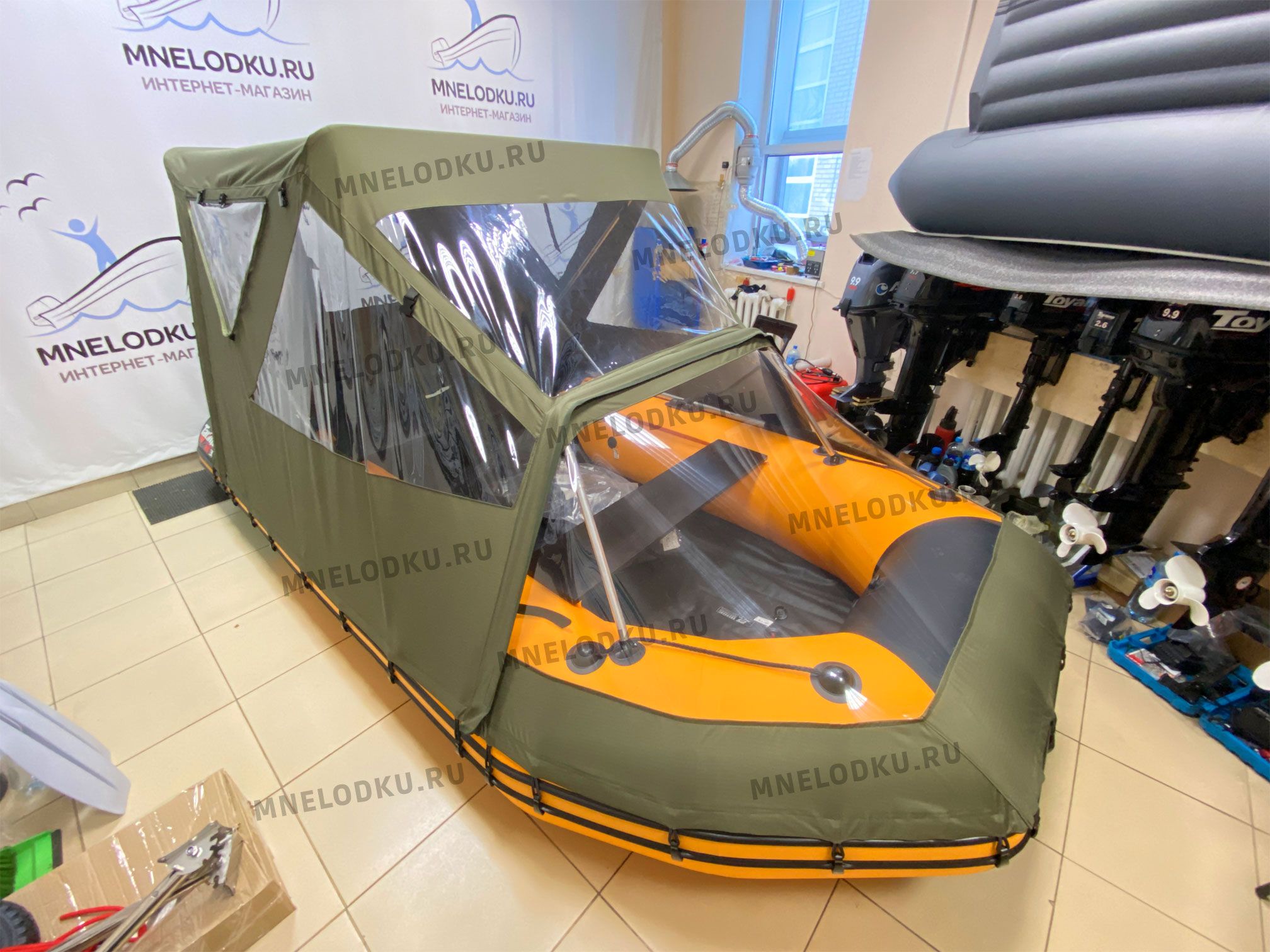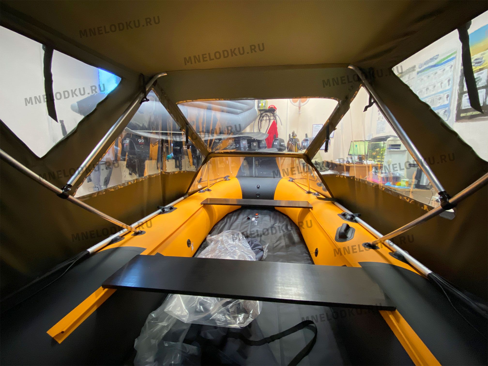 Смотрите, как устанавливается тент на лодку
