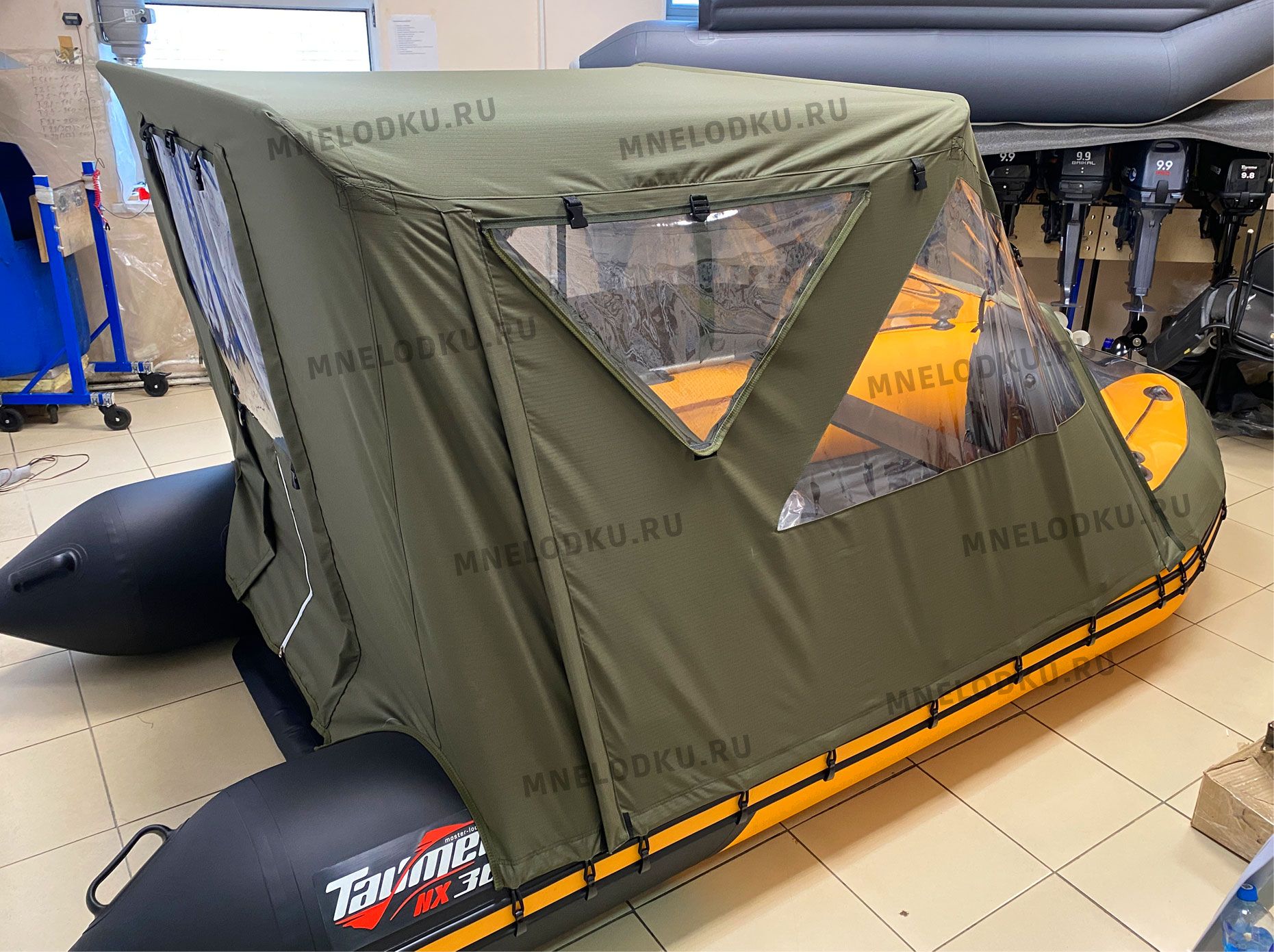 Ходовой тент предназначен для установки на всю лодку Таймень NX 3600 PRO MAX в виде палатки. Служит для защиты от ветра, осадков и посторонних взглядов. Имеет хорошую обзорность для шкипера и пассажиров. Опоры тента на баллон лодки можно не приклеивать, на ходу не сдвигаются, если тент хорошо натянуть.