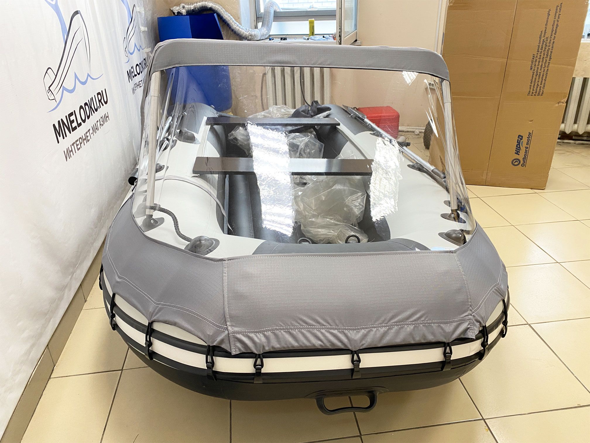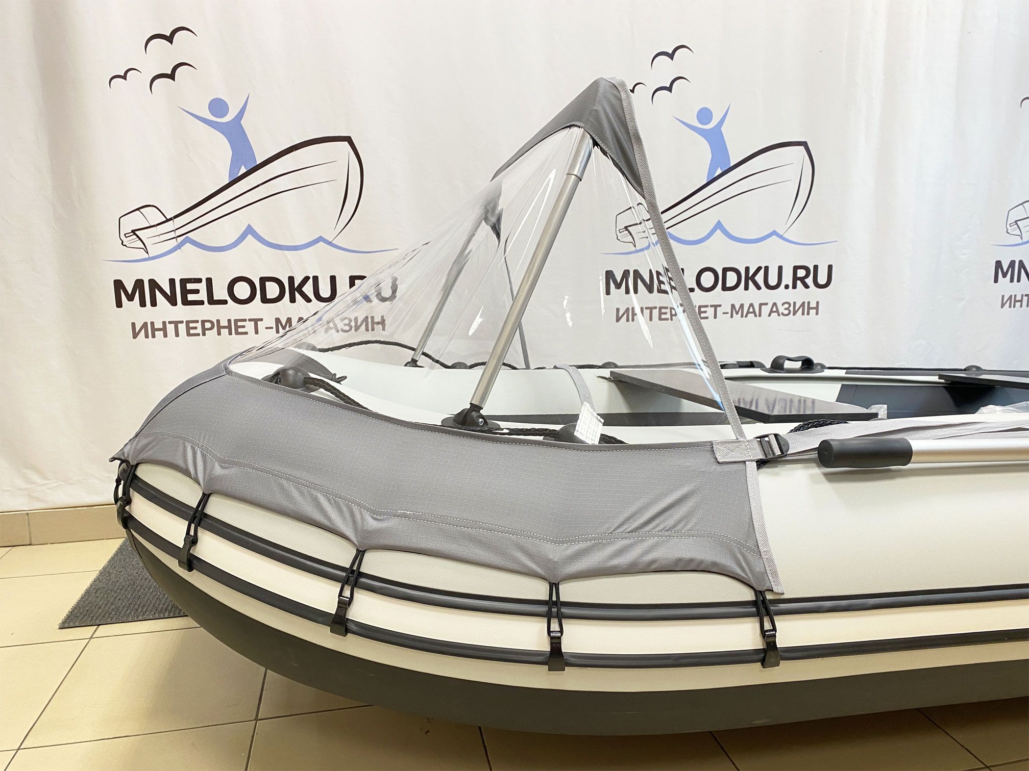 - высота от баллона лодки до верха тента 55 см