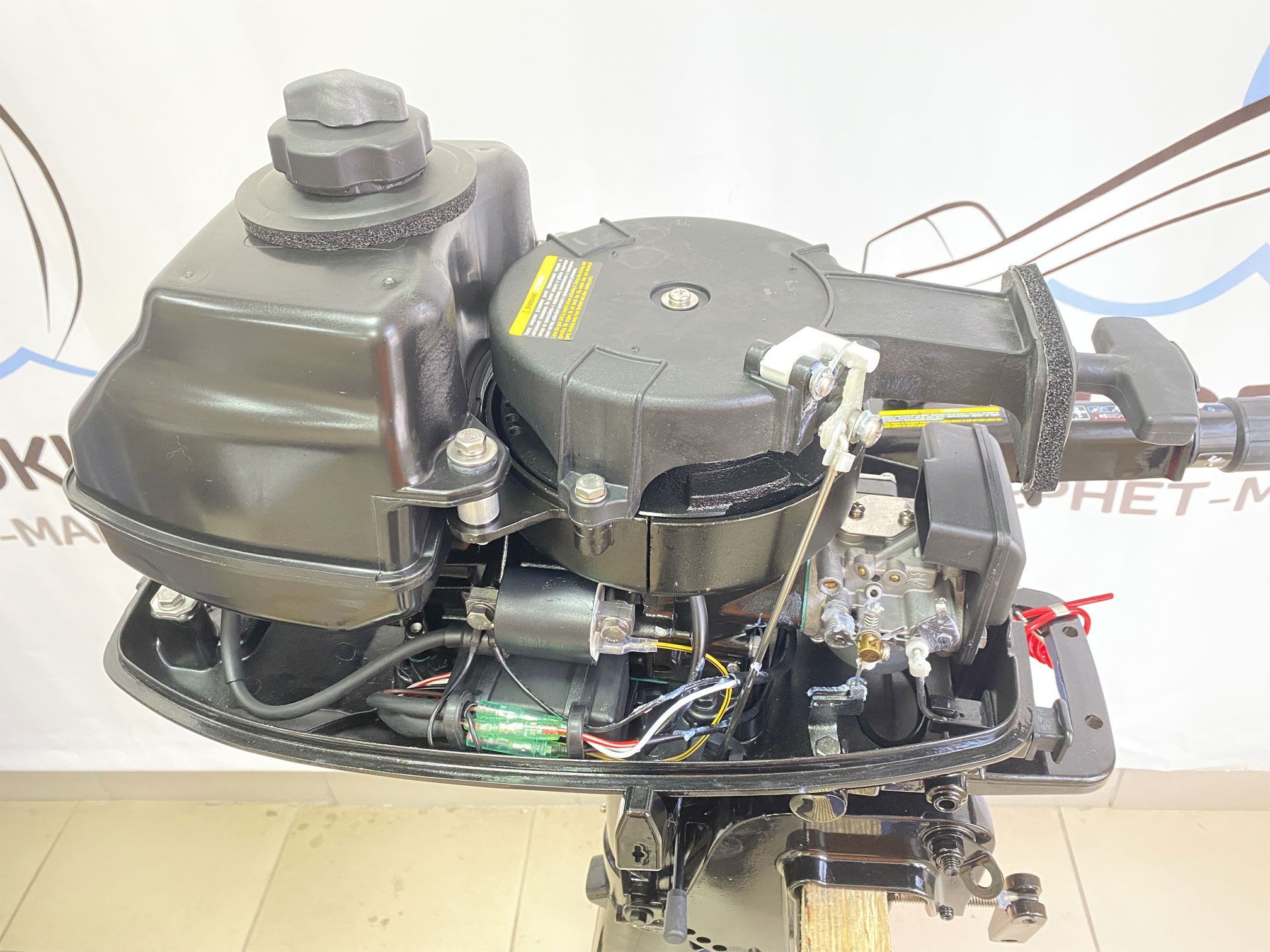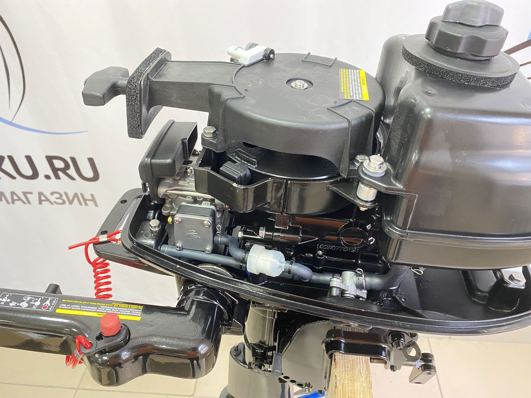 Компактный и легкий (20 кг), для удобства оснащен ручкой для переноски. Инновационная система зажигания CDI и новая конструкция стартера для легкого запуска. Переключение передач Вперед/Назад/Нейтраль. Прочный алюминиевый винт, оптимальный по объему встроенный топливный бак на 2.7 л с возможностью подключения внешнего бака. Имеет румпельное управление для маневренности и безопасности. Предусмотрена защита от запуска двигателя при включенной передаче. 5 положений изменения угла дифферента (наклона двигателя), имеет 2 положения для движения по мелководью. Не подлежит регистрации в ГИМС МЧС !